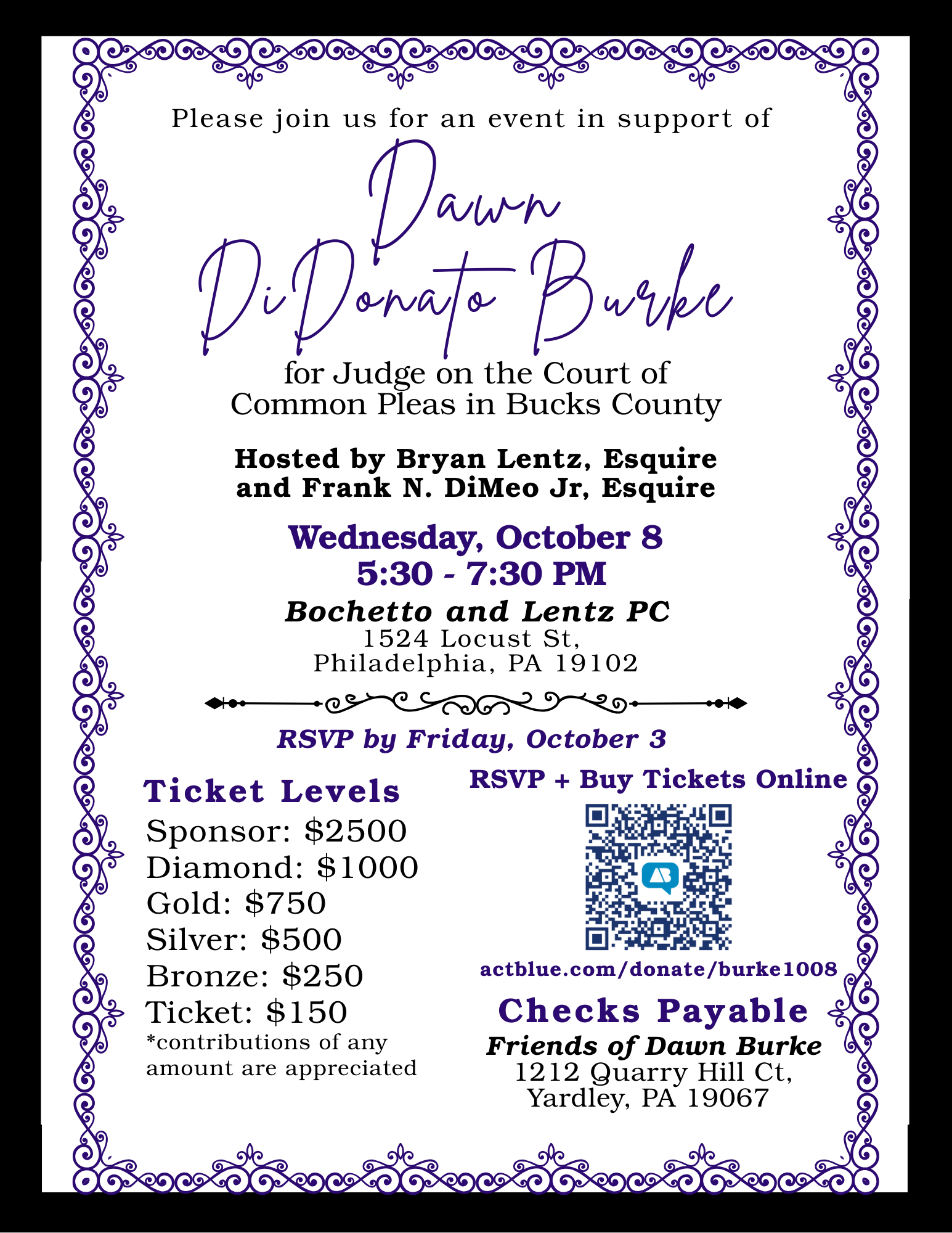 You’re invited to a special event supporting Dawn DiDonato Burke for Judge on the Court of Common Pleas in Bucks County!